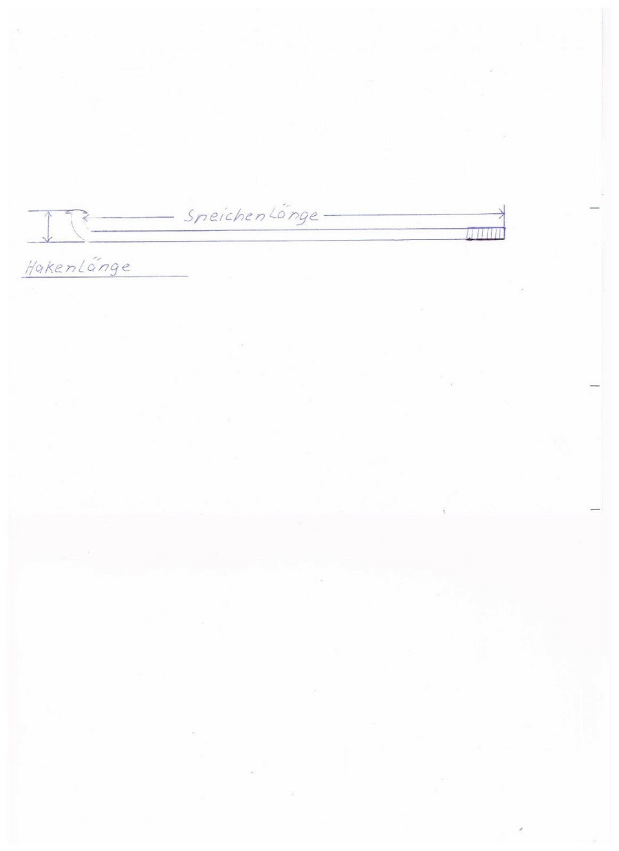Bei geraden Speichen wird die Gesamtlänge gemessen.