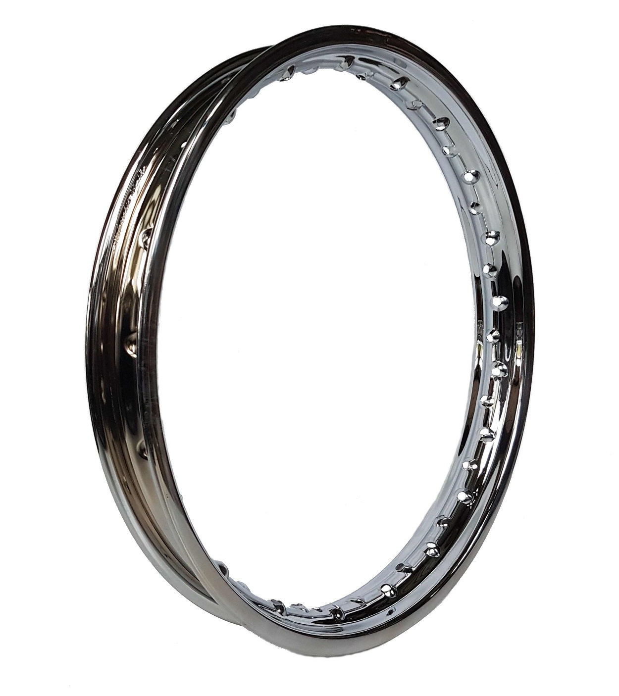 Verchromte Stahlfelge 1,85 x 19, 40 Loch, Junak