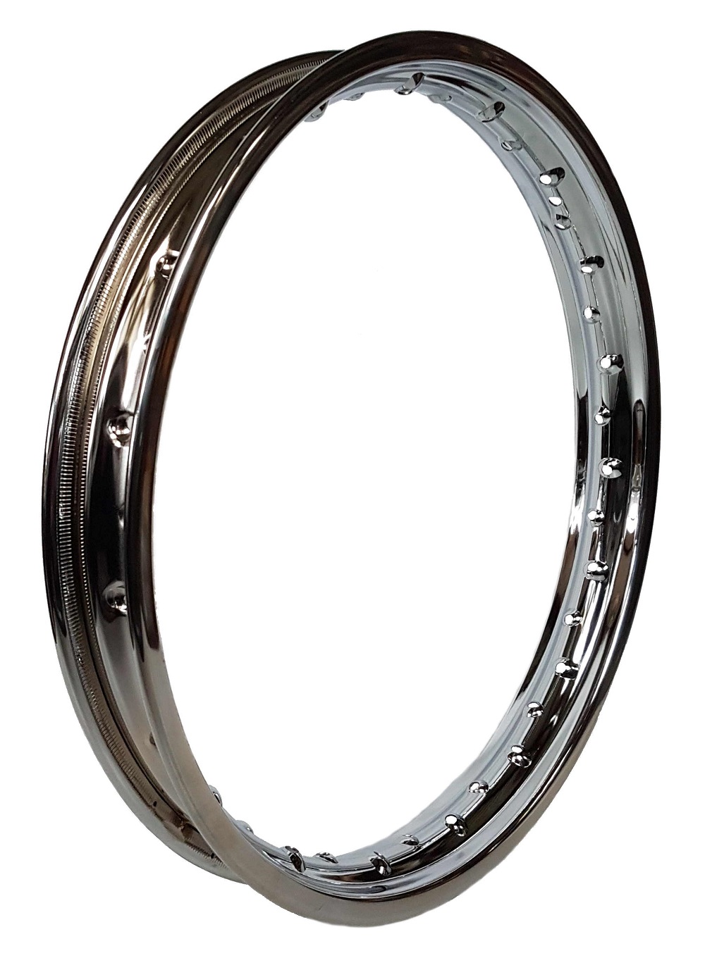 Verchromte Stahlfelge 1,85 x 19, 36 Loch.