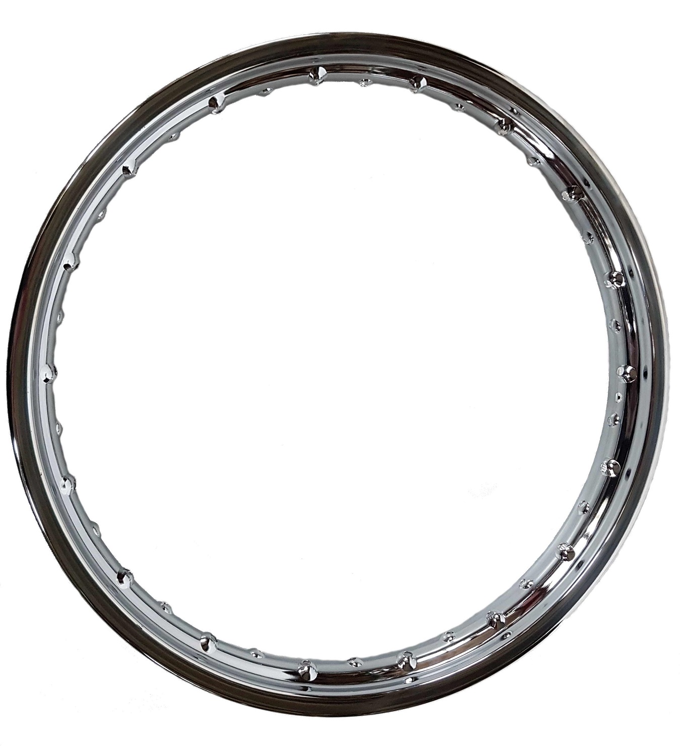 Verchromte Stahlfelge 1,85 x 19, 36 Loch.