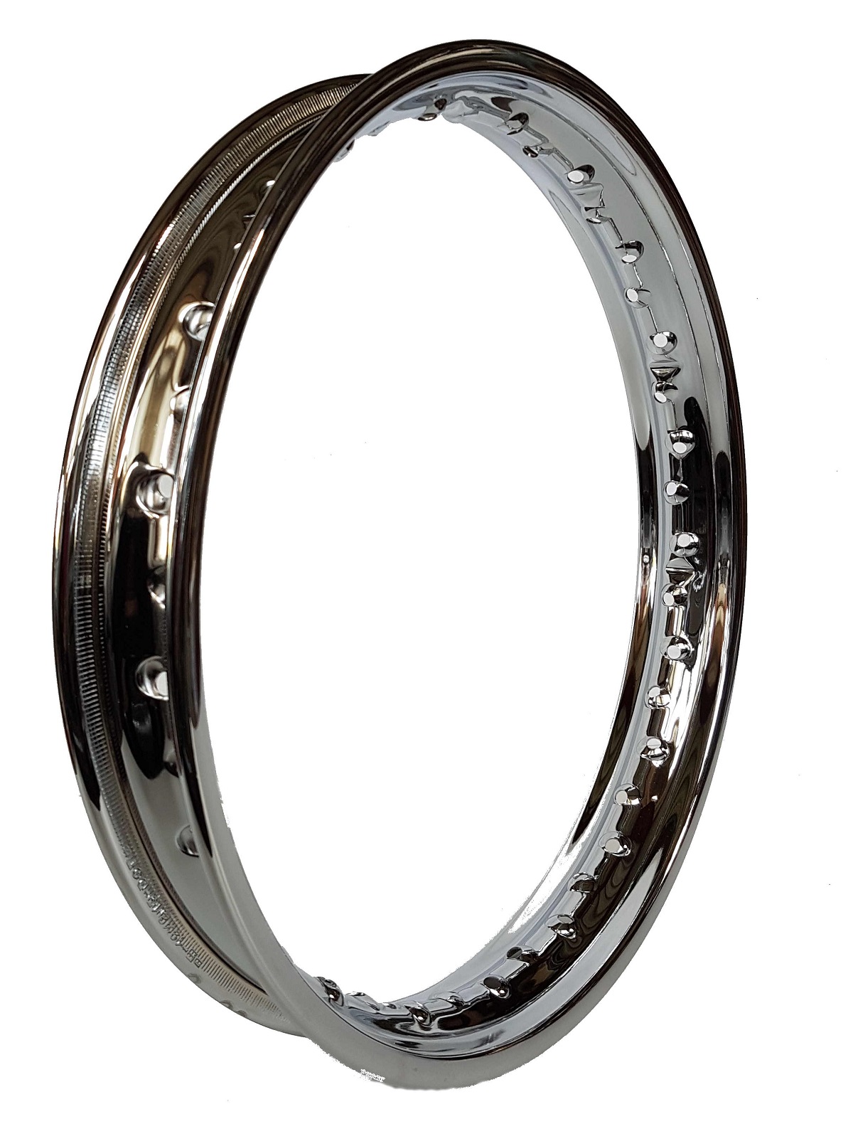 Verchromte Stahlfelge 2,15 x 19, 40 Loch.